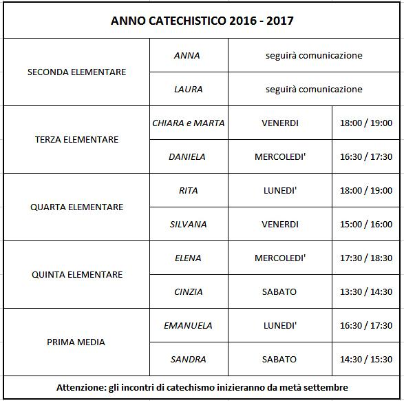 Orari Catechismo 2016-17
