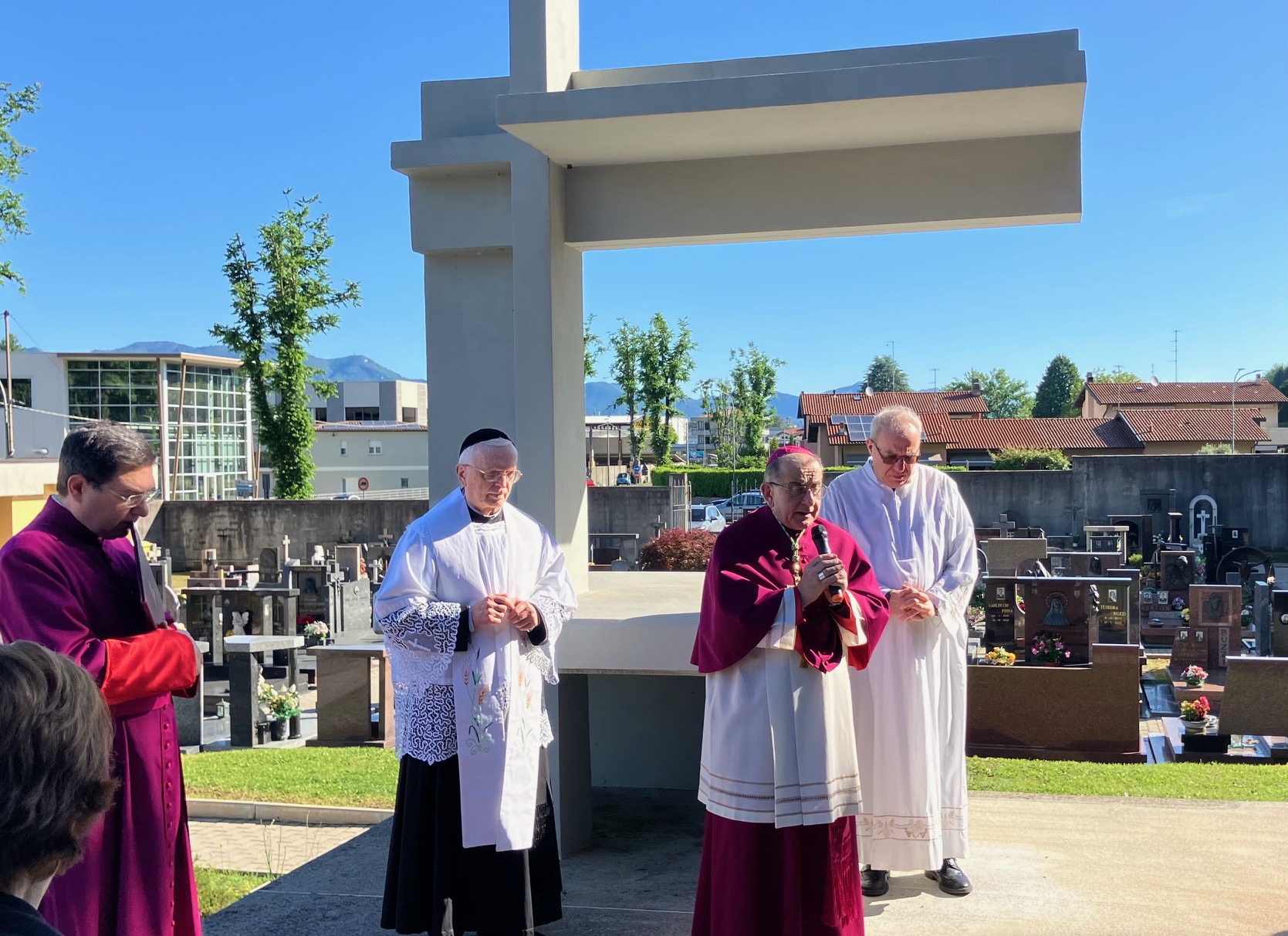 Dopo una visita al cimitero (immagine) si è recato in cheiesa per le lodi cantate.