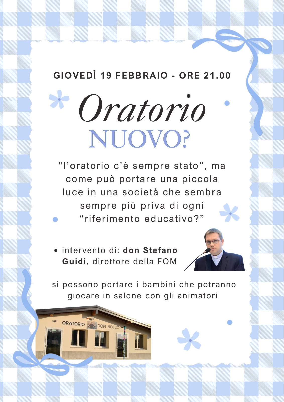 Giovedì 19 Febbraio presso Oratorio di Daverio, intervento di don Stefano Guidi - "Oratorio Nuovo?"