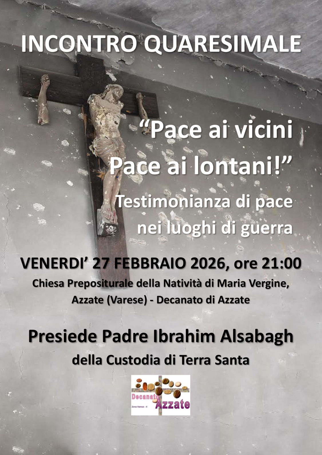 Venerdì 27 febbraio incontro Quaresimale ad Azzate, presiede Padre Ibrahim Alsabagh